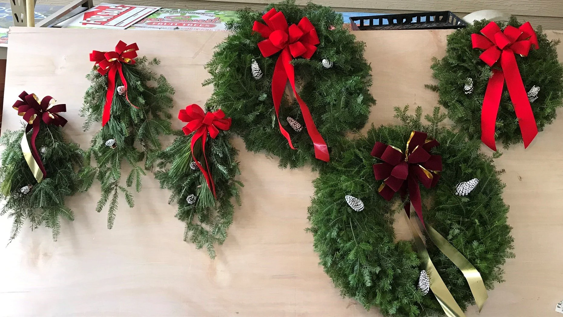 A selection of bare or decorated wreaths, garland, loose greens, porch pots, or custom installation of your personal or business pots.